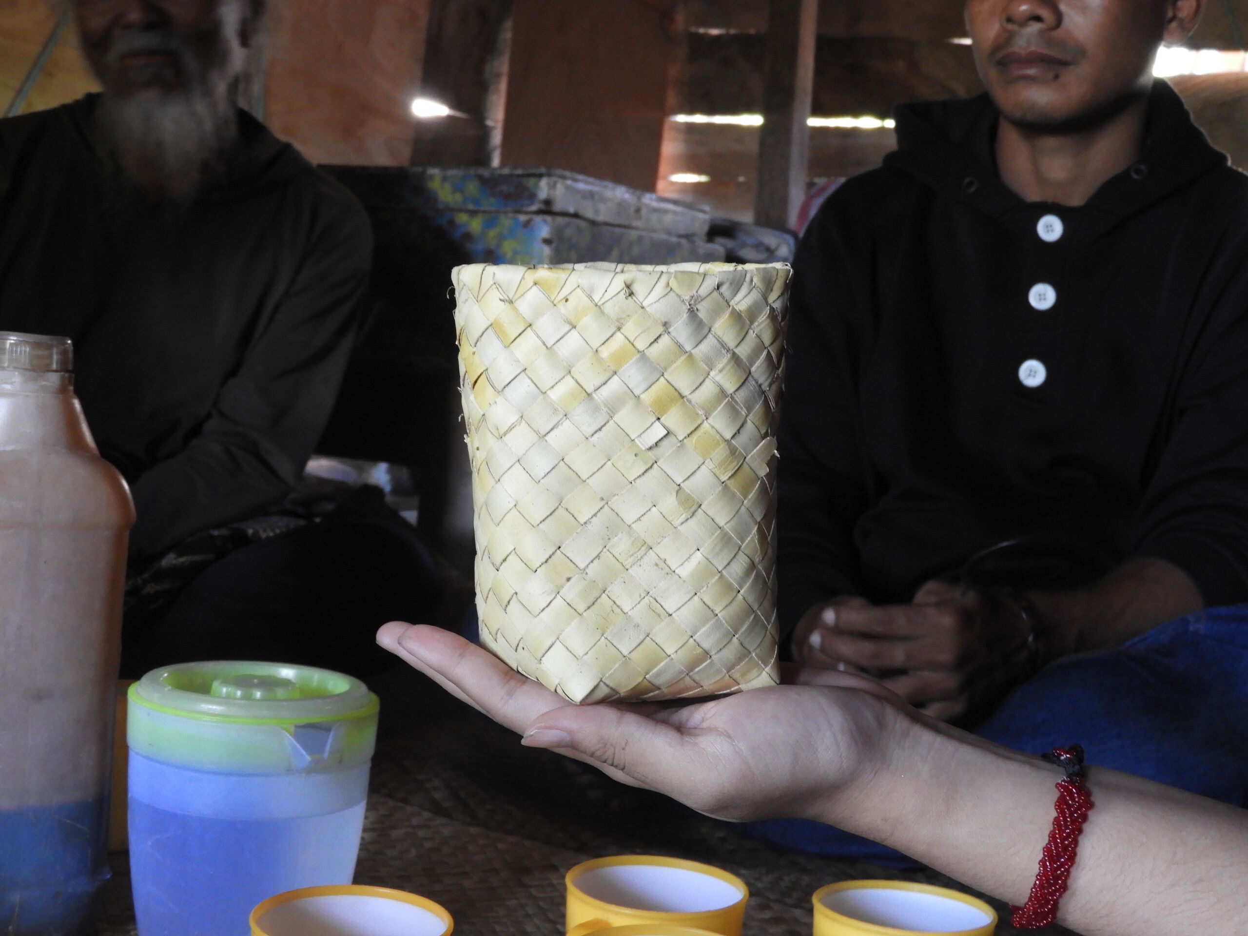 Anyaman lontar yang dipakai untuk mempersembahkan kacang hijau, sorgum, dan sirih kepada nenek moyang dalam upacara Hole.