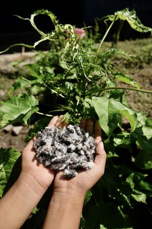 Selain itu, Dian[4] seorang penenun muda dari Desa Mengiluk, Batujai, Lombok Tengah, Nusa Tenggara Barat juga masih menggunakan kapas sebagai bahan utama dalam menenun. Untuk memenuhi kebutuhan bahan baku menenunnya, Dian rutin mengumpulkan biji kapas, kemudian membudidayakan pohon kapas meski hanya di pekarangan rumah.[5]