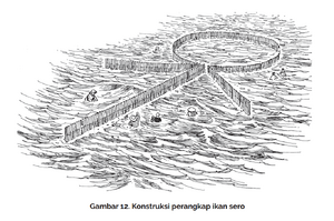Teknik yang disebut sero ini berupa konstruksi perangkap ikan sederhana yang dibangun di pinggiran pulau seluas ratusan meter persegi. Jika dilihat tampak atas, sero berbentuk anak panah dengan ujung berbentuk lingkaran (lihat Gambar 12) yang disebut futu.