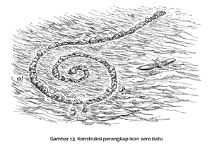 Konstruksi perangkap ikan sero batu. (Foto: Buku Sangia, hal. 78)