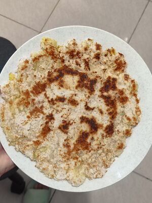 - Tabur bahan yang sudah dicampur rata ke atas teflon yang sudah diolesi mentega